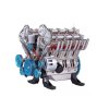 Edukativní, celokovový funkční model osmiválcového spalovacího motoru s V uspořádáním. Stavebnice se skládá z 500 dílů, každý díl je označen a zabalen do speciálních pěnových nosičů, aby bylo zajištěno, že skládání modelu je organizované, jednoduché a stavebnice bude vždy kompletní a nepoškozená. Součástí je jednoduchý a barevný návod ve stylu krok za krokem. Žáci model motoru skládají pomocí imbusového klíče, který je součástí balení.